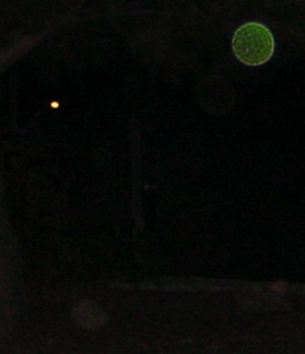 A green orb, a house light and a rock