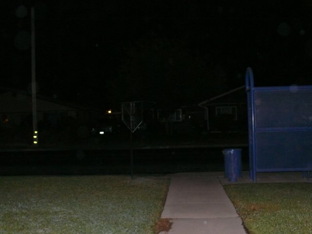 Okay, so we have a light pole and reflectors, an orange light on the neigborbor's